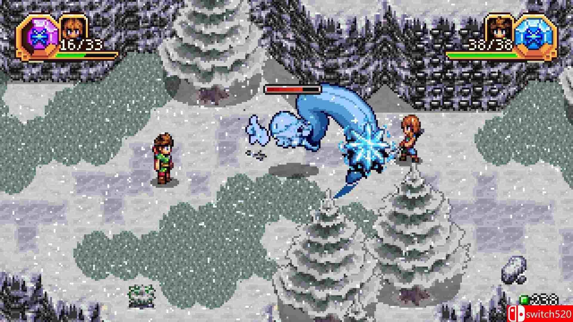 《施莱恩传说》是一款角色扮演类(RPG)游戏,Shrine’s Legacy 是一款 16 位 RPG 游戏。它受到超级任天堂时期游戏的启发,背景设定在阿德米亚魔法世界。一对英雄要尝试结合魔法元素,修复神殿之剑并拯救世界。在单人模式中,玩家会扮演其中一位英雄;在双人模式中,玩家会扮演他们俩。switch520